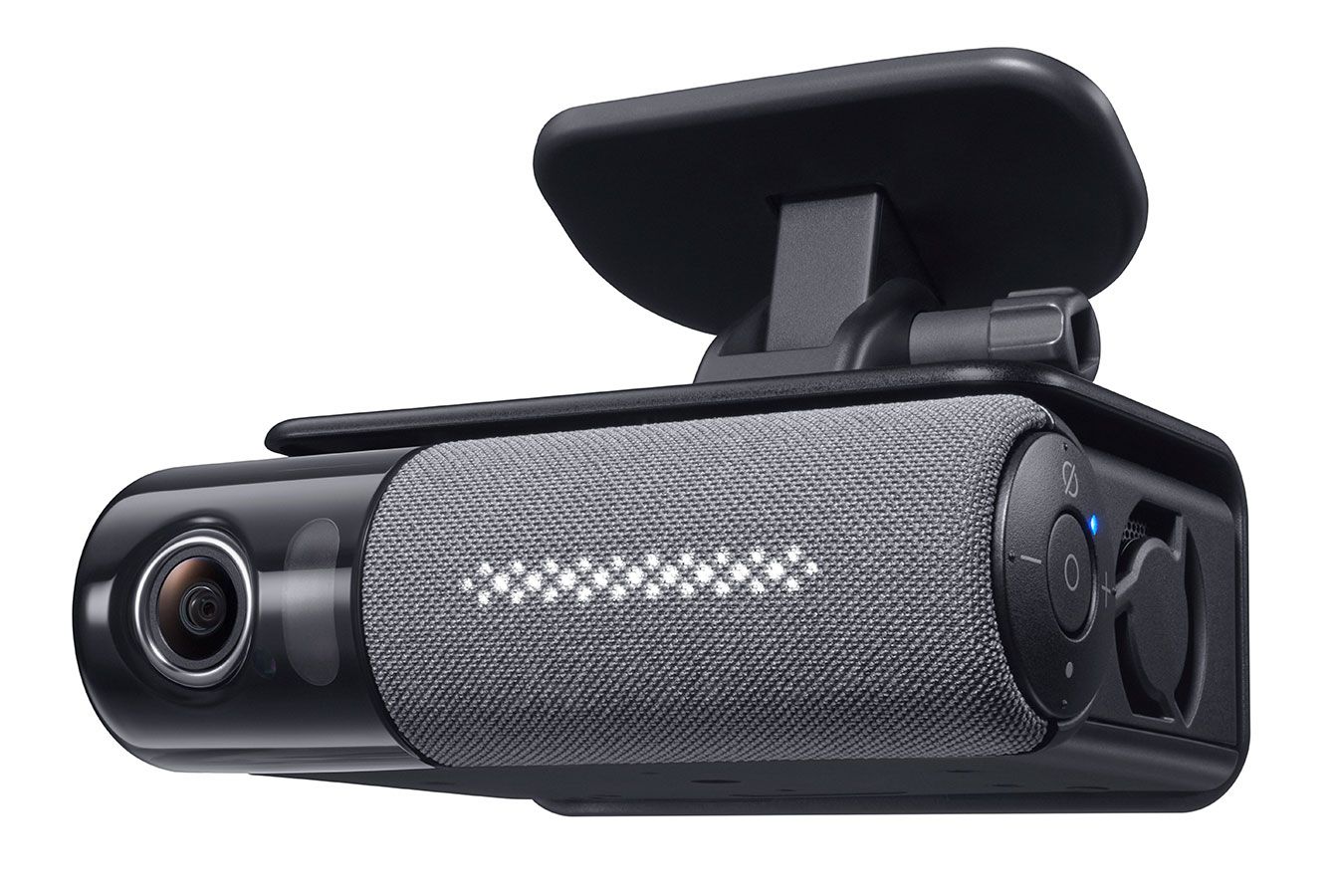 画面のないカーナビ「NP1」。バックミラーの脇にある筐体はドライブレコーダーのようだ。