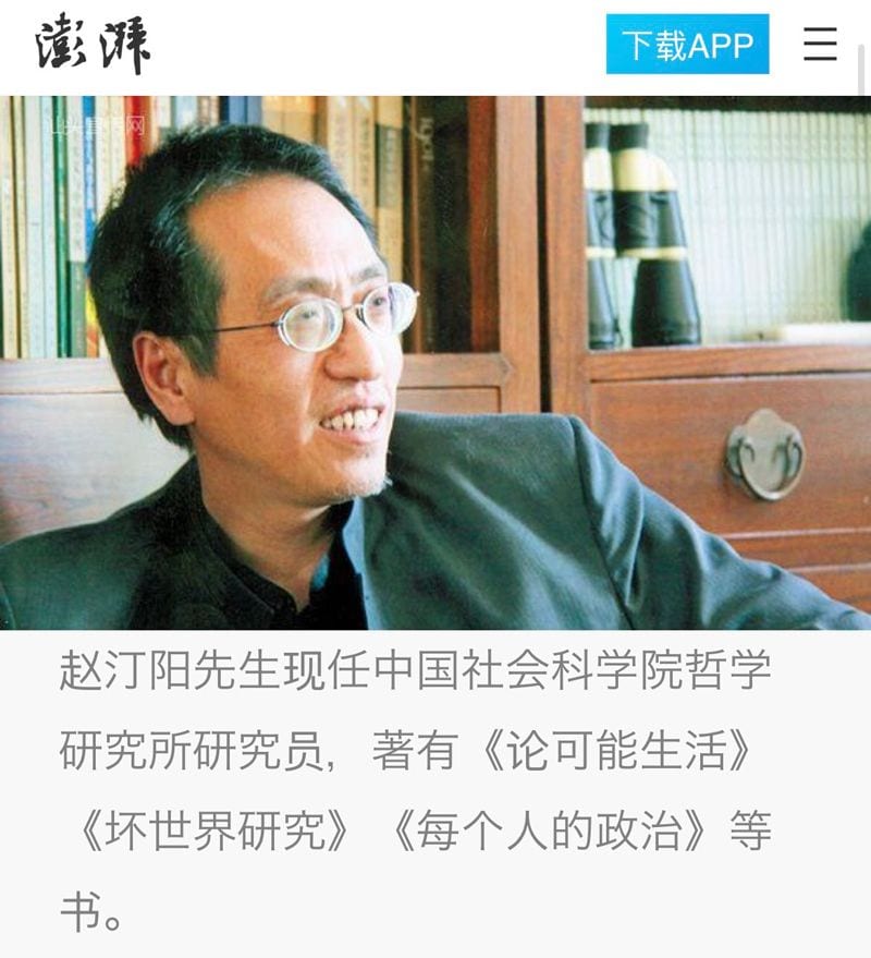 2015年1月24日、上海の大手ニュースメディア『澎湃』に登場した際の趙汀陽(『