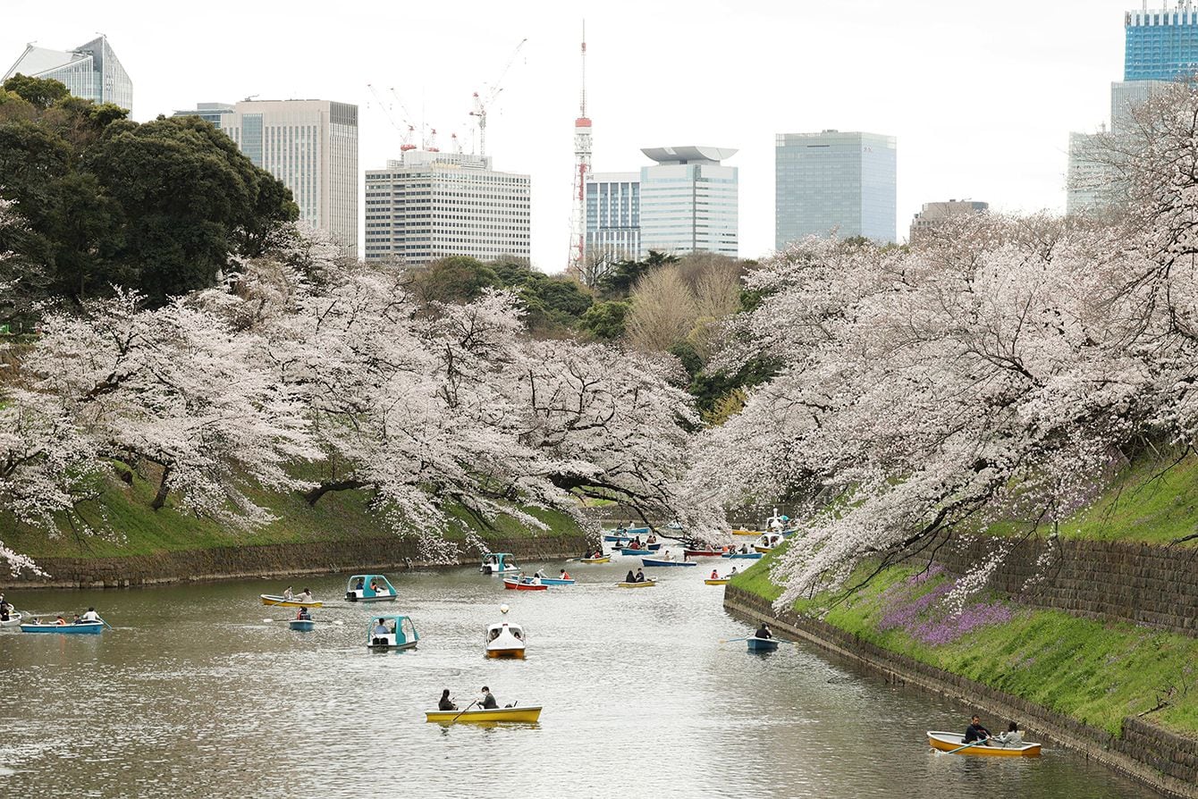 まん延防止等重点措置が解除されて初の日曜日となった2022年3月27日、東京・千鳥ケ淵の桜が見頃を迎え多くの人が訪れていた=東京都千代田区