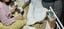 起き上がって猫を抱く妻とその横に立つ夫。突然、在宅介護を余儀なくされたという。
