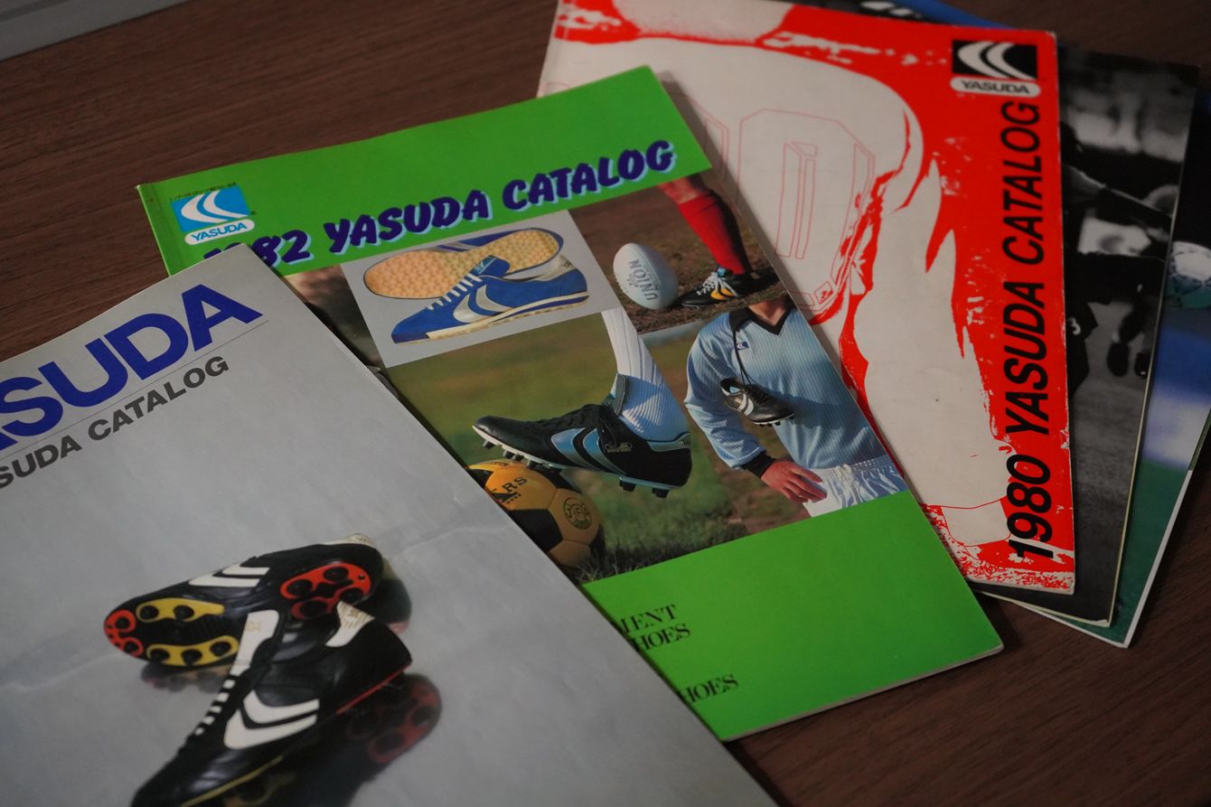 往年の安田の製品カタログ。安田はサッカーシューズだけでなく、野球のスパイクやラグビーシューズ、アメリカンフットボールシューズも手掛けていた時代がある。