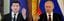 2021年3月3日にキエフで欧州理事会議長と共同記者会見するウクライナのヴォロディミル・ゼレンスキー大統領(左)と2021年8月20日にモスクワのクレムリンで会談後のドイツ首相と共同記者会見するロシアのウラジーミル・プーチン大統領(右)