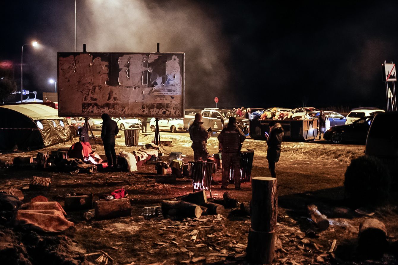 モルドバ共和国パランカにてウクライナから避難してきた人びと。氷点下の中、国境を越えるために待つ人々も。