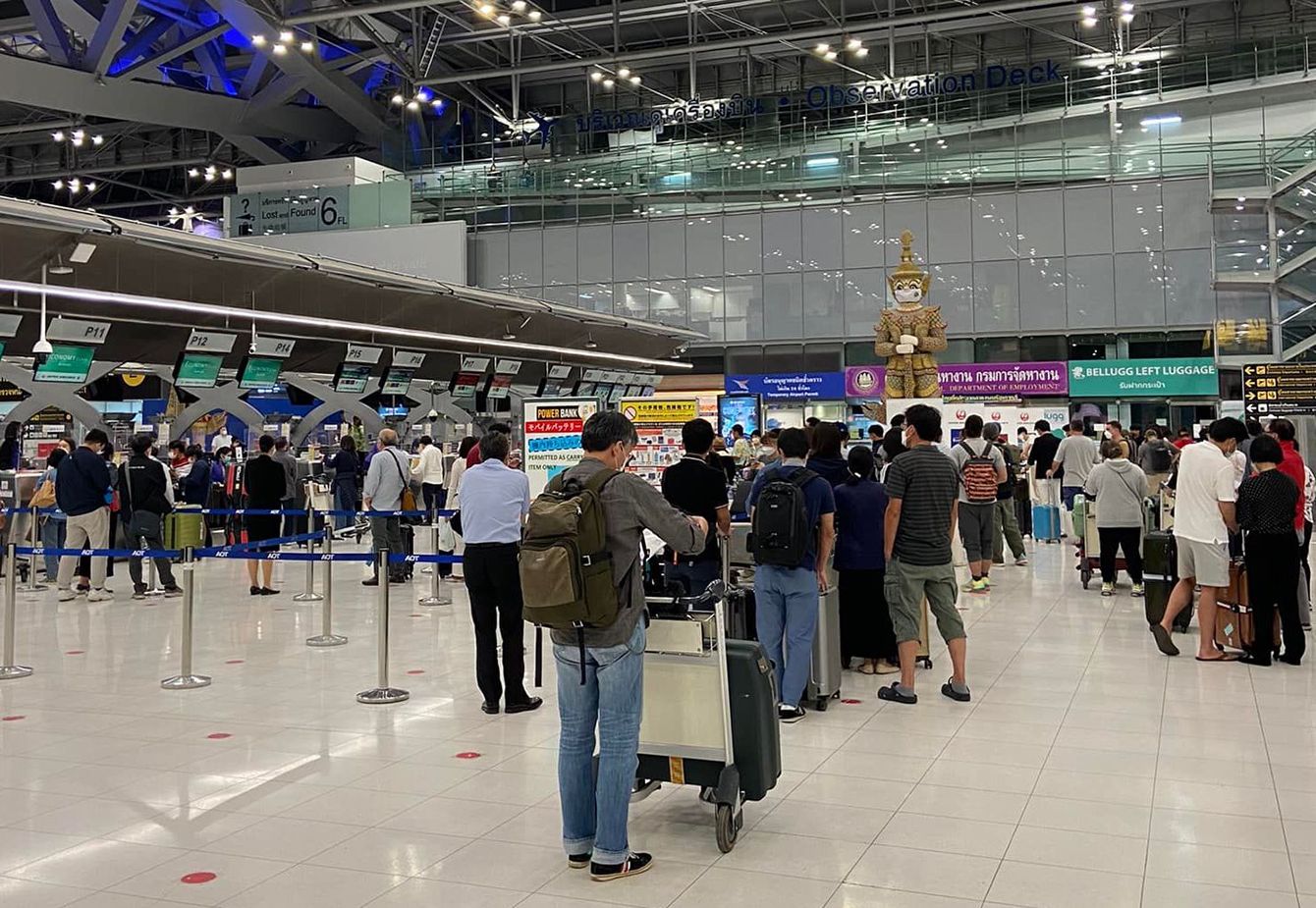 一足先に開国したタイは空港も賑わい始めた(バンコク・スワンナプーム国際空港にて、橋賀秀紀氏4月4日撮影)