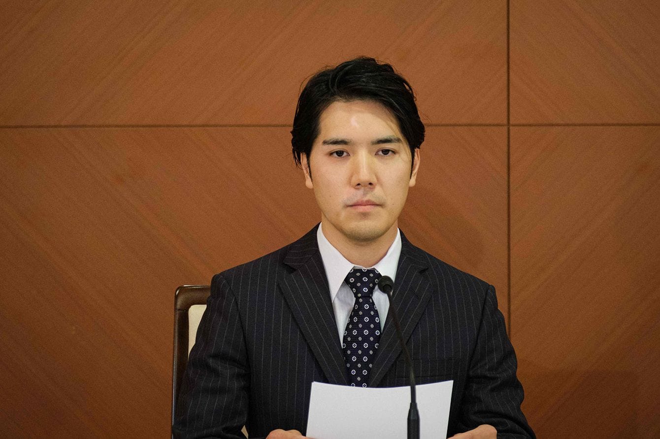 記者会見に臨む小室圭さん=2021年10月26日