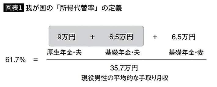 分母は「手取り」、分子は「総額」のため所得代替率は実際より高めに出てしまう(出所=『