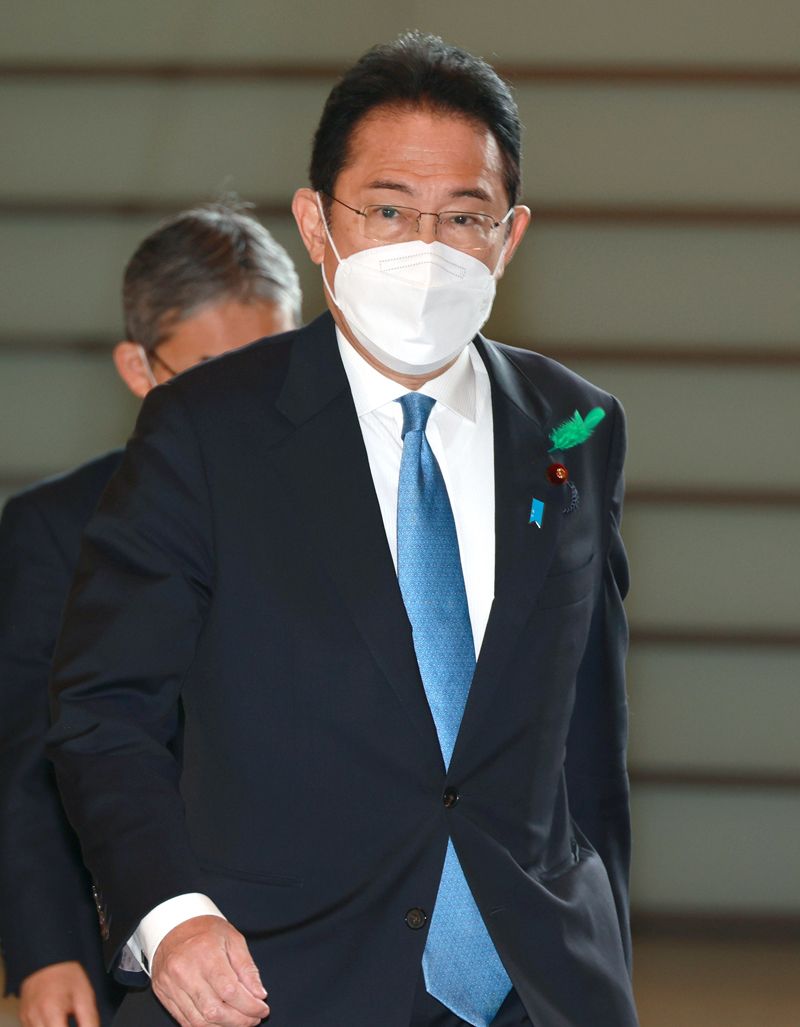 首相官邸に入る岸田文雄首相=2022年4月21日、東京・永田町(写真=時事通信フォト)