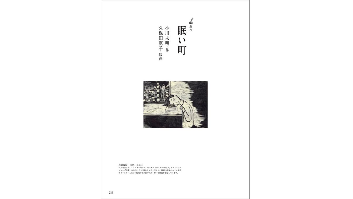[創作]眠い町 作・小川未明/版画・久保田寛子:近代日本を代表する児童文学作家・小川未明が遺した、どんな人でも眠ってしまうという不思議な町での奇妙な物語と、注目のイラストレーター・久保田寛子の連作版画とが出会った、時をこえたコラボレーション。