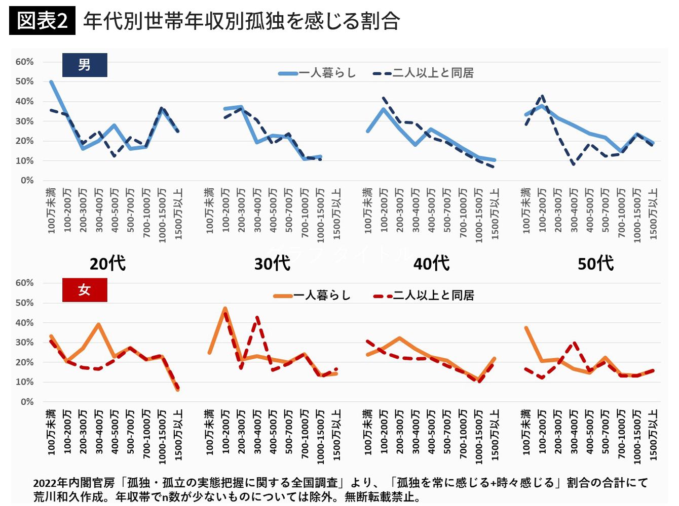 年代別世帯年収別孤独を感じる割合