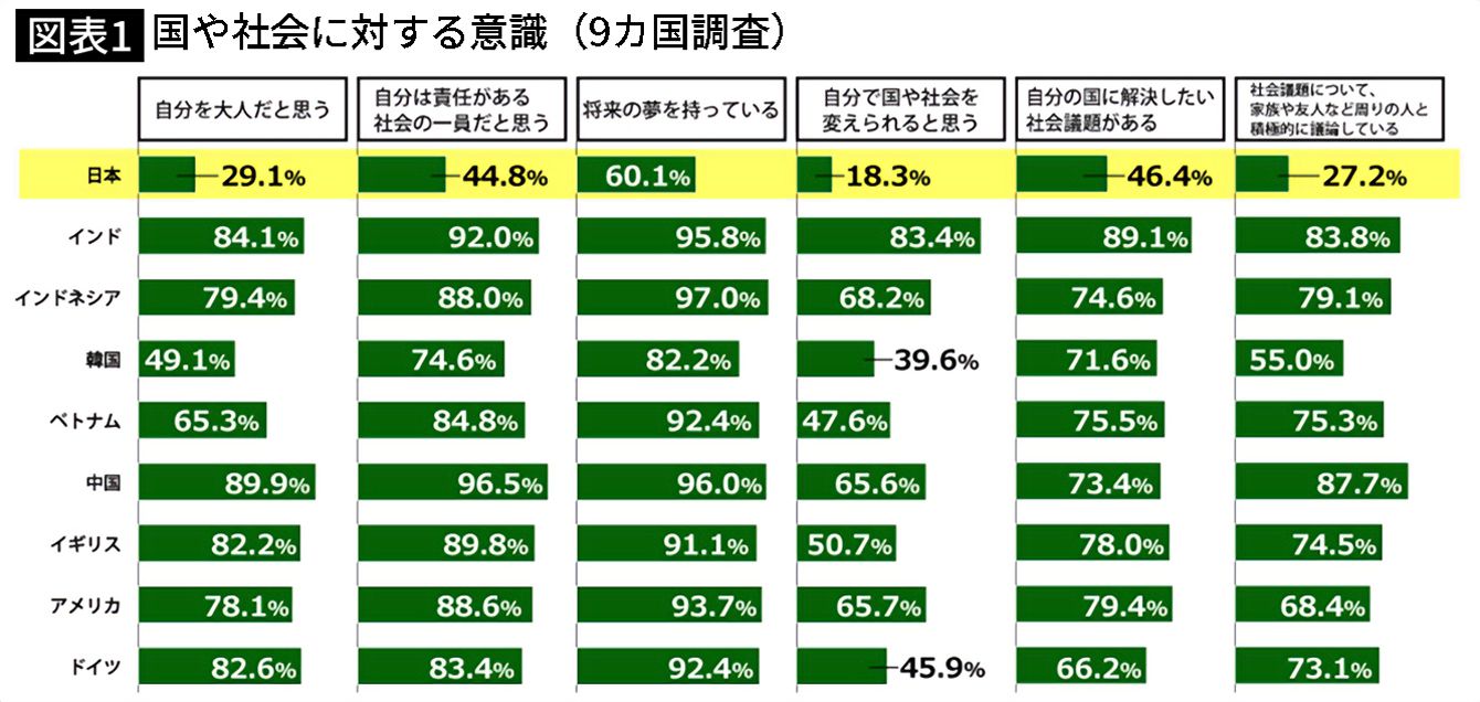 出典=日本財団「18歳意識調査(2019)」より第20回テーマ「国や社会に対する意識(9カ国調査)」