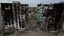 ウクライナの首都キーウ近郊のボロディアンカ。ロシア軍の攻撃で破壊された建物。2022年5月8日撮影