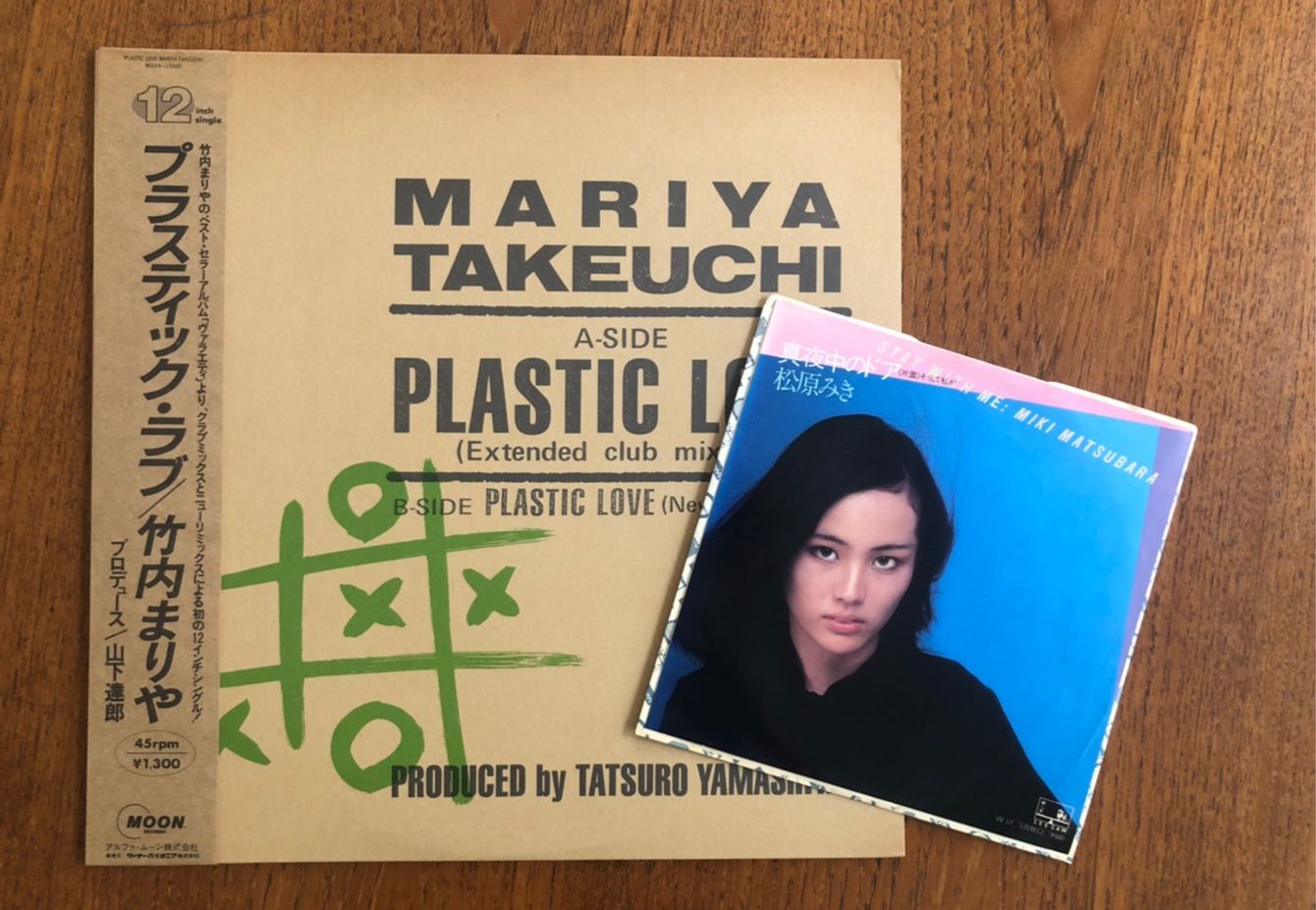 左から、竹内まりや『プラスティック・ラブ』、松原みき『真夜中のドア STAY WITH ME』のシングルのジャケット