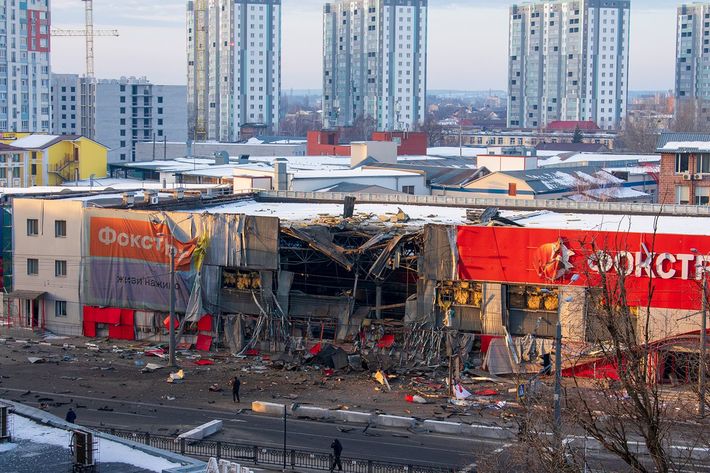 ロシアの爆撃を受けたウクライナ東部ハルキウ=2022年3月15日