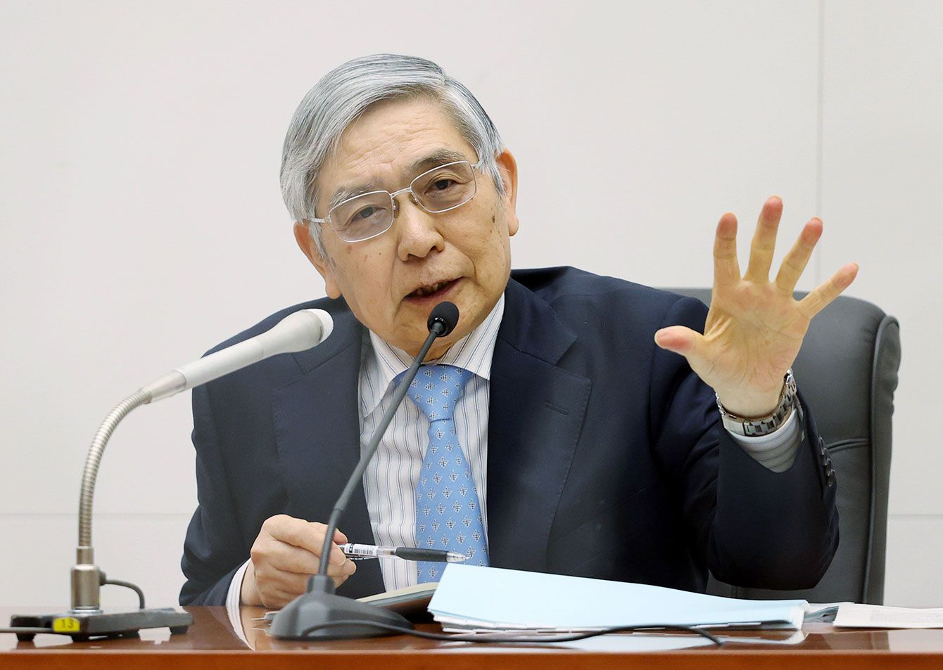 金融政策決定会合を終え、記者会見する日本銀行の黒田東彦総裁=2022年4月28日、東京・日本橋本石町の日銀本店