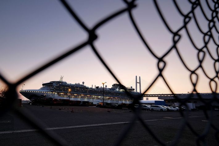 2020年2月24日、横浜港の大黒埠頭客船ターミナルに停泊するダイヤモンド・プリンセス号