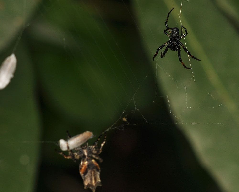 【写真4】交尾後のナガコガネグモの雌が雄を捕食(出典=『