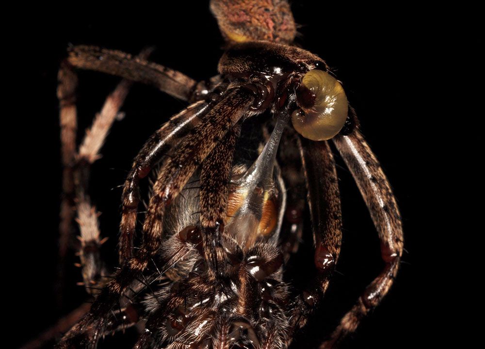 【写真4】交尾後のナガコガネグモの雌が雄を捕食(出典=『