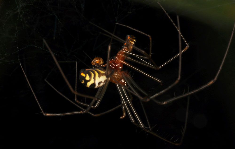 【写真4】交尾後のナガコガネグモの雌が雄を捕食(出典=『