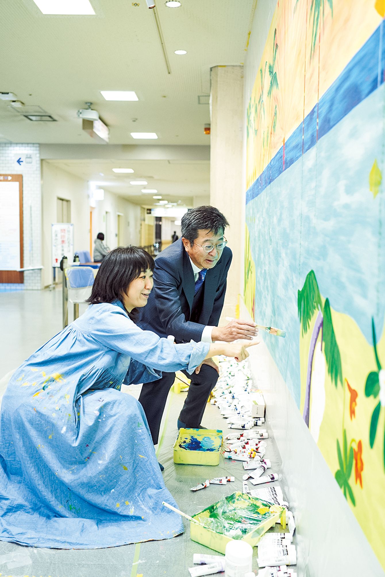 鳥取大学医学部附属病院の原田省病院長(左)と作家・画家の大宮エリーさん(右)