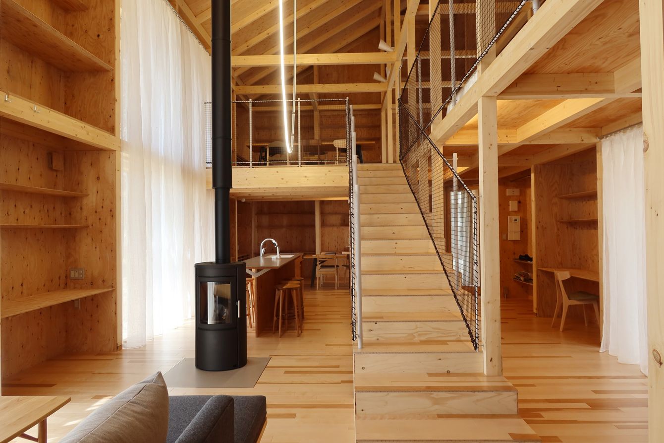 オープン前のKAGUの家の内部。壁が構造体となっているのが特徴。地元で作られた家具が使われている。