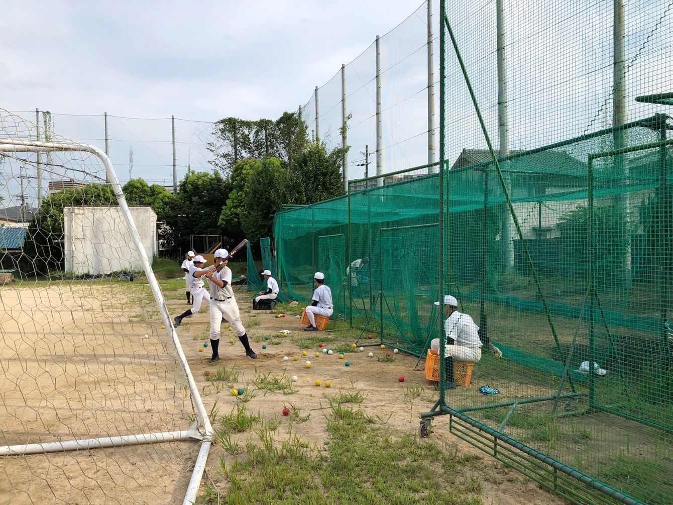 打撃練習する部員たち