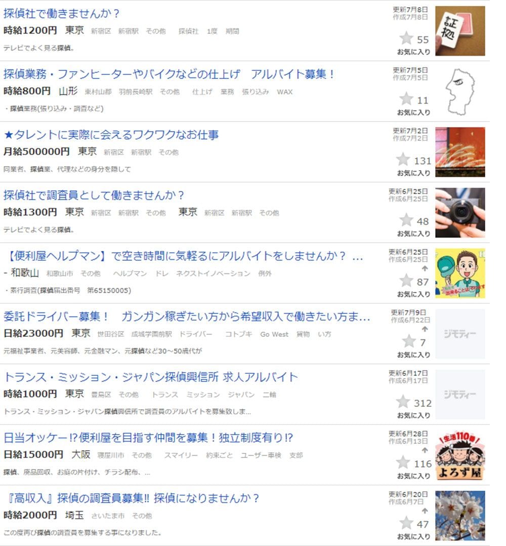 ジモティーでの探偵募集はけっこう多い(写真=「