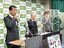 記者会見で「飲むヨーグルト」を飲んで乳製品の消費をアピールする金子原二郎農林水産相(中央)と、牛乳を飲む中村裕之(手前)、武部新両副大臣=2021年12月17日、東京・霞が関の同省