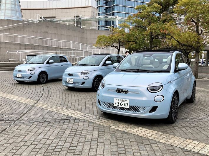 フィアットの「500eOPEN/チンクエチェントイーオープン」は42.0kWhのリチウムイオンバッテリーを搭載し、WLTC値で335km走る。試乗車の車両重量は1360kg