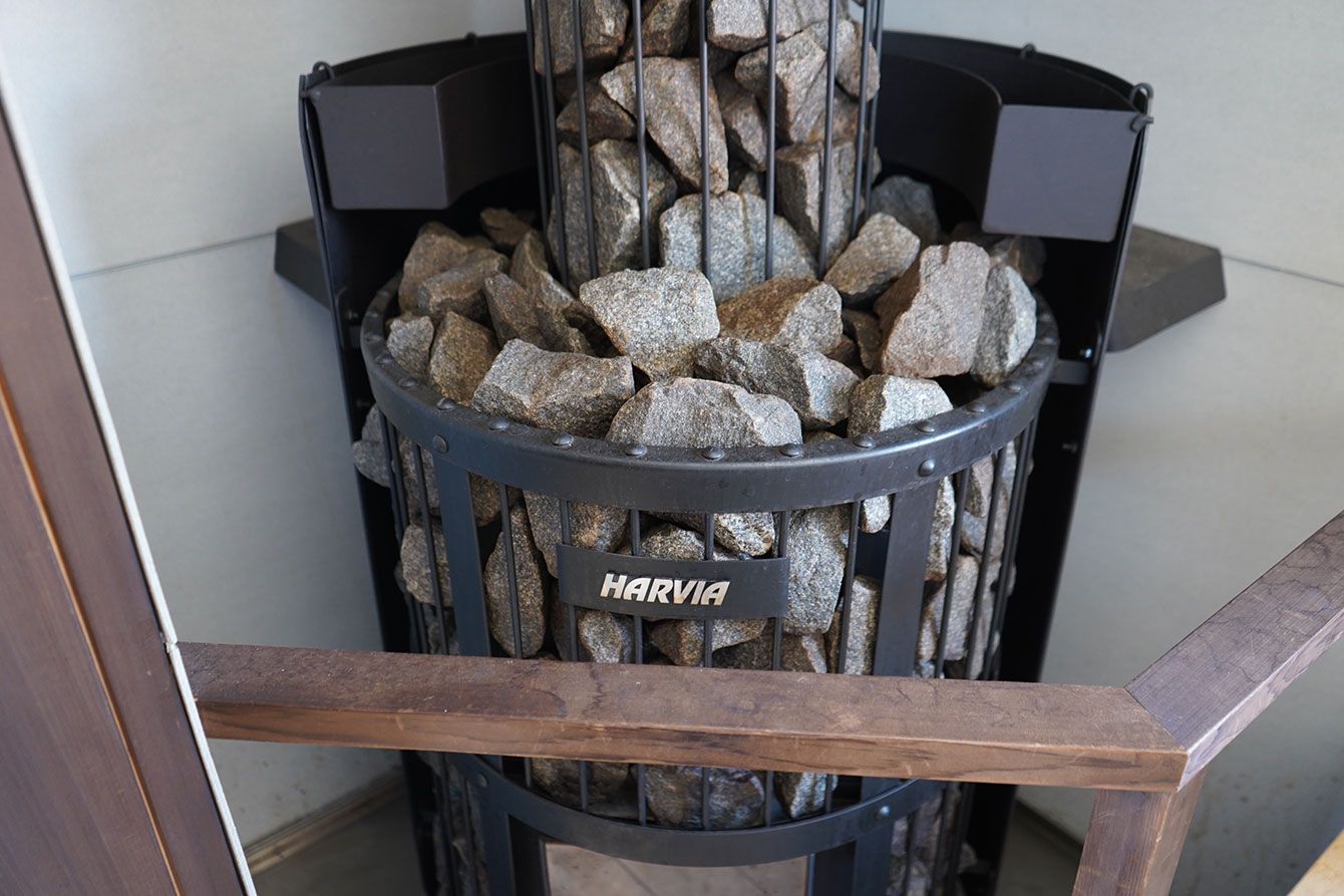薪ストーブはフィンランドのサウナメーカーHARVIAのLegendシリーズを採用。サウナストーンは240kg。