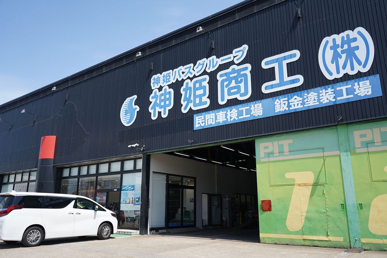 兵庫県姫路市の神姫商工。ここでは大型バスなどの整備、