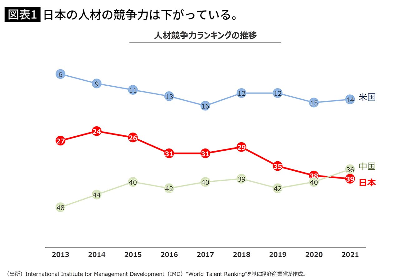日本の人材競争力ランキングは米国14位、中国36位を下回る39位(出所=「