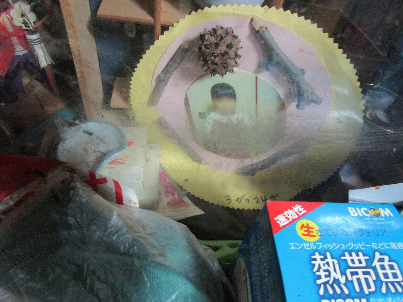 仏壇の中にもゴミがあふれていた。(撮影=笹井恵里子)