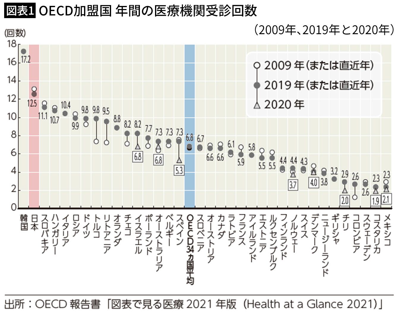 日本の年間の医療機関受診回数は世界トップクラス(出所=『