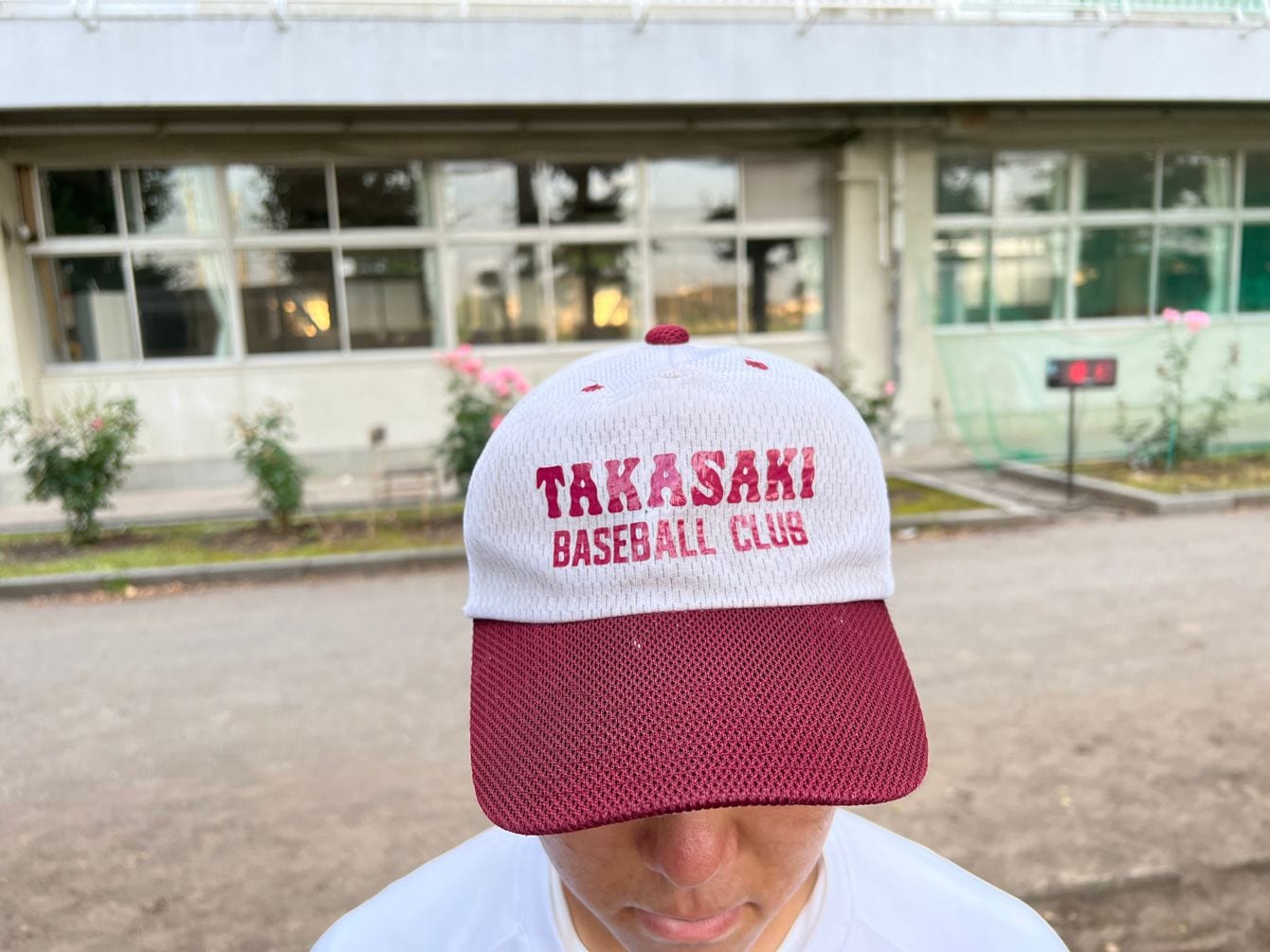ユニフォームは白にエンジ