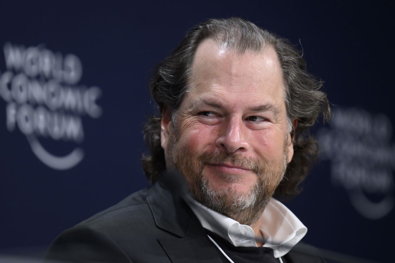 2022年5月25日、スイスのダボスで開催された、世界経済フォーラムの年次総会(ダボス会議)に出席した米セールスフォースのマーク・ベニオフ会長兼CEO