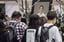 東京・増上寺で故安倍晋三元首相に献花する人たち=2022年7月12日、東京都千代田区。