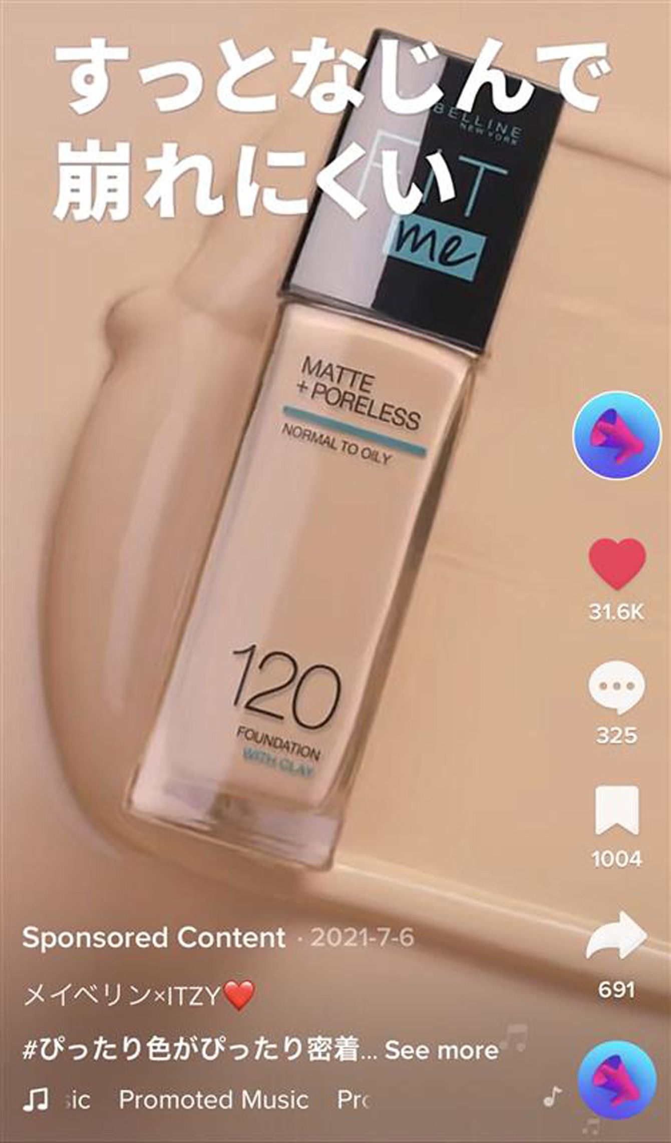 TikTokのメイベリン ニューヨーク公式アカウントの投稿。製品の「売り」をシンプルに伝えている