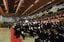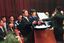 2013年3月17日、神奈川県横須賀市の防衛大学校で行われた卒業式で、スピーチをする安倍晋三首相(当時)。