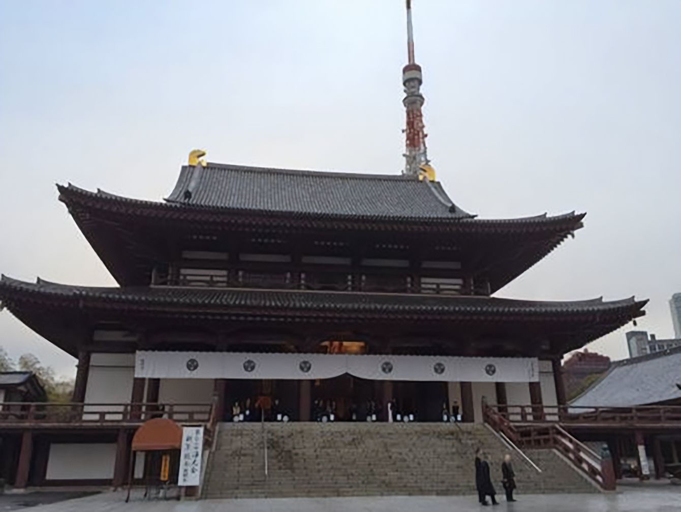 安倍晋三元首相の通夜が営まれる増上寺で、一般献花場に花を手向ける人たち=2022年7月11日午後、東京都港区