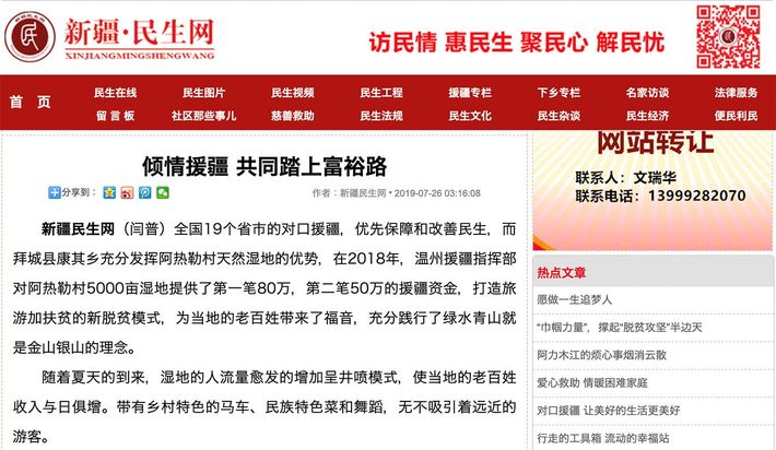 新疆への「援助」(=援疆)を伝えるホームページ。海外から見るとジェノサイドだが、中国は主観的には“いいこと”をやっていると思っているのだ。(「