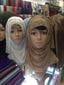 ウルムチ市内のバザールで売られていた女性向けのスカーフ。写真は2014年3月のものであり、宗教的締め付けが強まった現在もこの場所で同じものが売られているかは不明。