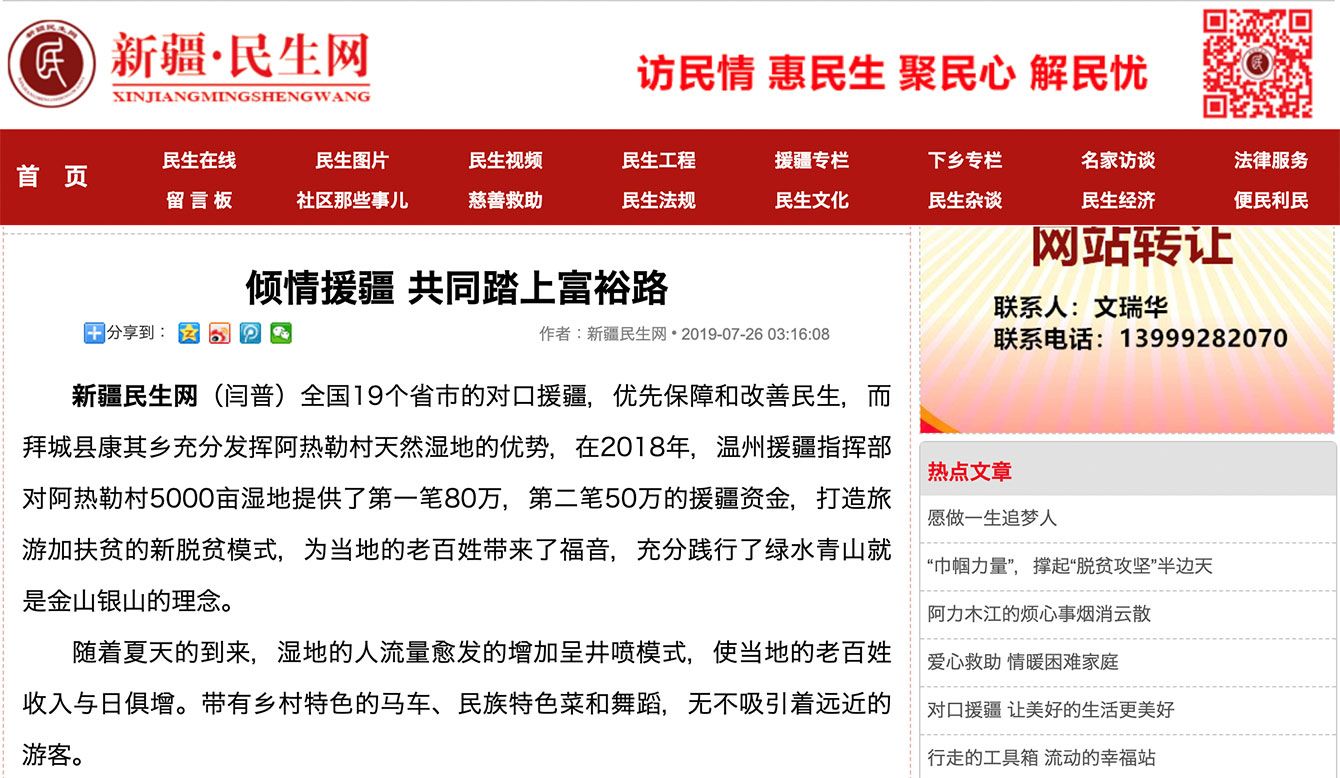 新疆への「援助」(=援疆)を伝えるホームページ。海外から見るとジェノサイドだが、中国は主観的には“いいこと”をやっていると思っているのだ。(「