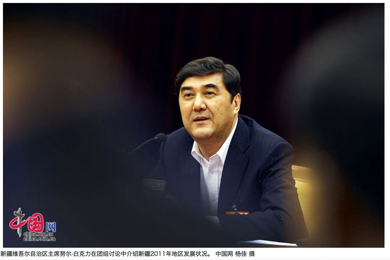 2011年に撮影されたヌル・べクリ。彼はウイグル族党員で、新疆ウイグル自治区政府主席、李克強内閣の閣僚などを歴任したが、2018年に汚職を理由に失脚した。(「