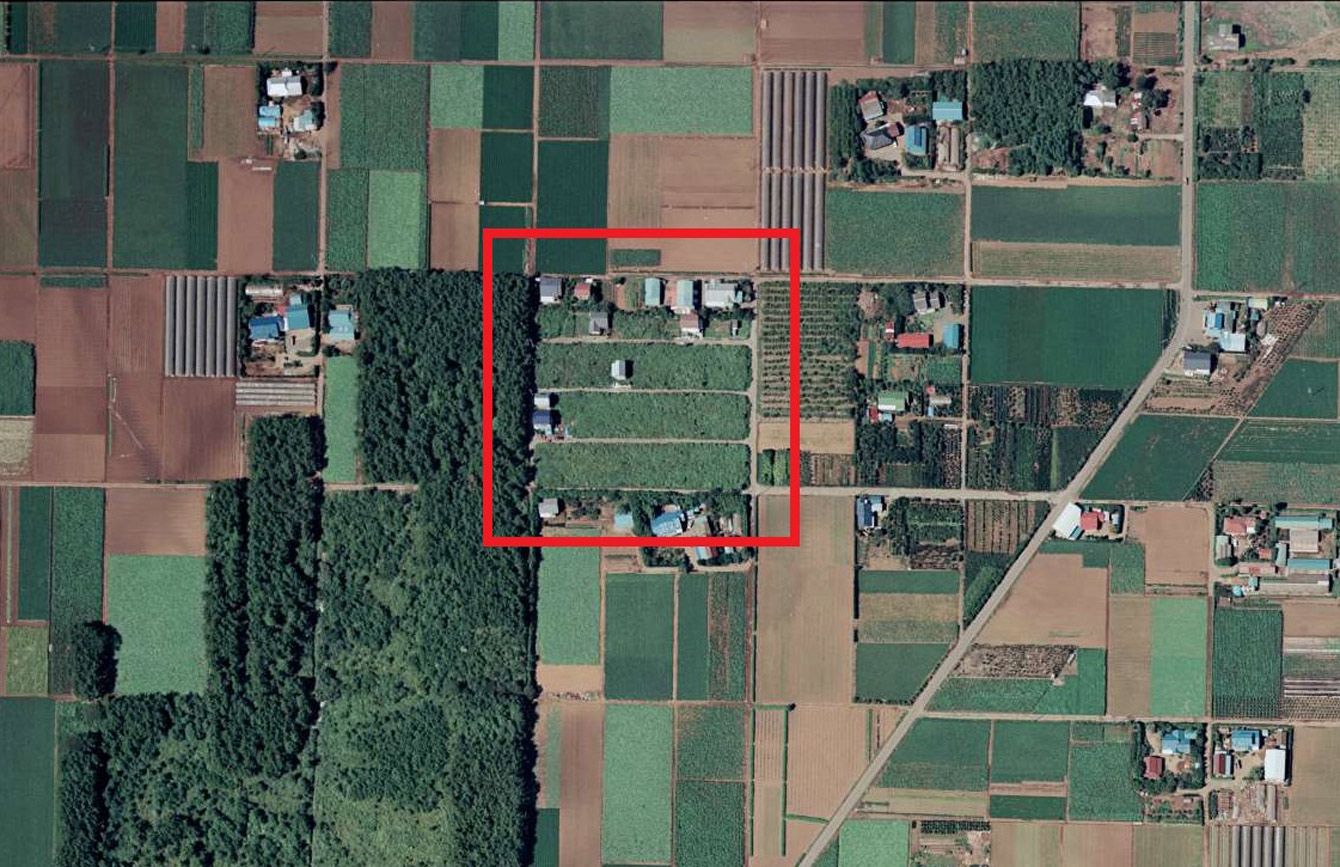 広告の分譲地周辺の模様。都市化と地価の上昇を見込んで分譲されたが、周囲は未だ広大な畑作地帯のままである。