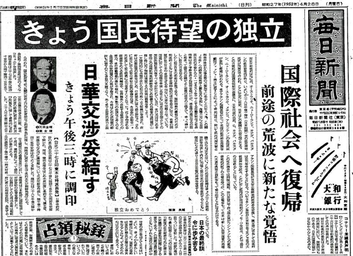図版1:「毎日新聞」日華条約締結の記事 1952年4月28日(出所=『