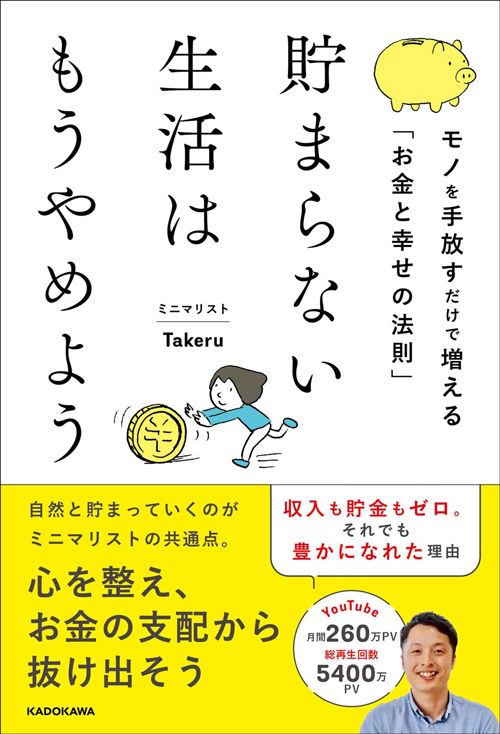 ミニマリストTakeru『貯まらない生活はもうやめよう モノを手放すだけで増える「お金と幸せの法則」』(KADOKAWA)