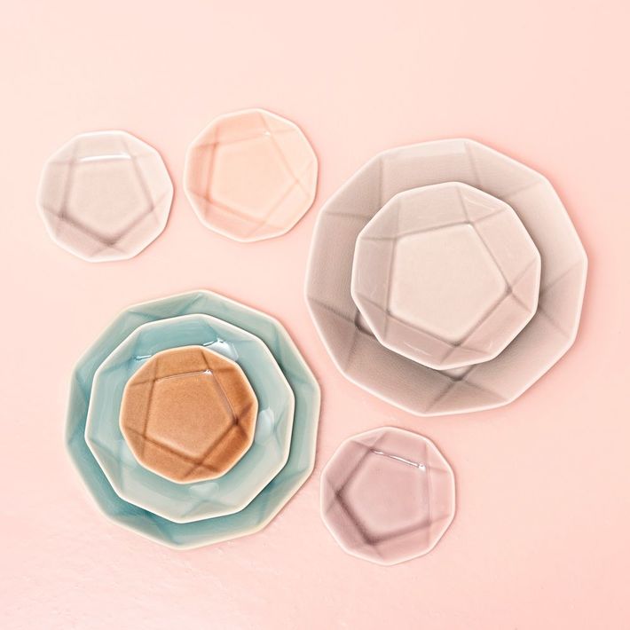 THREEPPYは、「あいらしい。そして私らしい。」をコンセプトに、大人可愛い雑貨を追求するブランドで、トレンドのグレーやピンク、ミントなどのくすみカラーを取り入れている。写真はダイヤシリーズ食器。