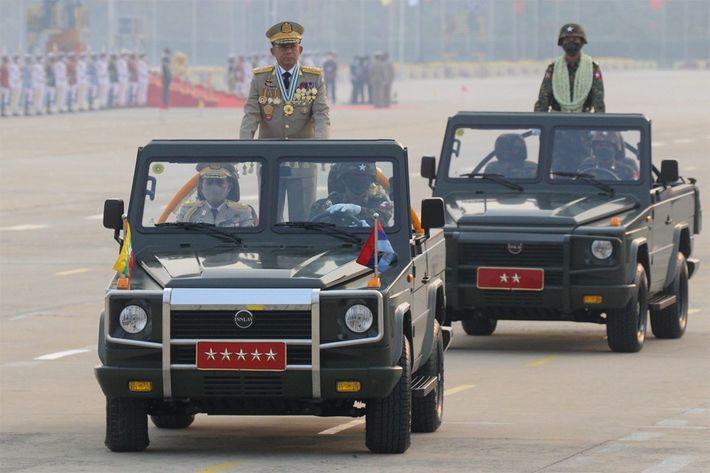ミャンマー連邦共和国ネピドーで行われたパレードに参加したミン・アウン・フライン上級大将(写真=Mil.ru/CC-BY-4.0/