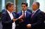 欧州理事会のエネルギー担当閣僚会議で、オランダ、チェコの両閣僚と話すドイツのロベルト・ハーベック経済・気候保護相(左)=2022年7月26日、ブリュッセル