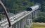 山梨県の実験線を走行するリニア新幹線の実験車両=2014年9月22日、山梨県都留市